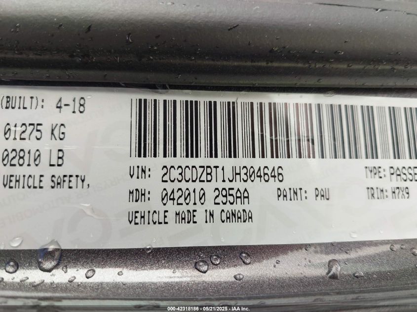 2018 DODGE CHALLENGER | 2C3CDZBT1JH304646