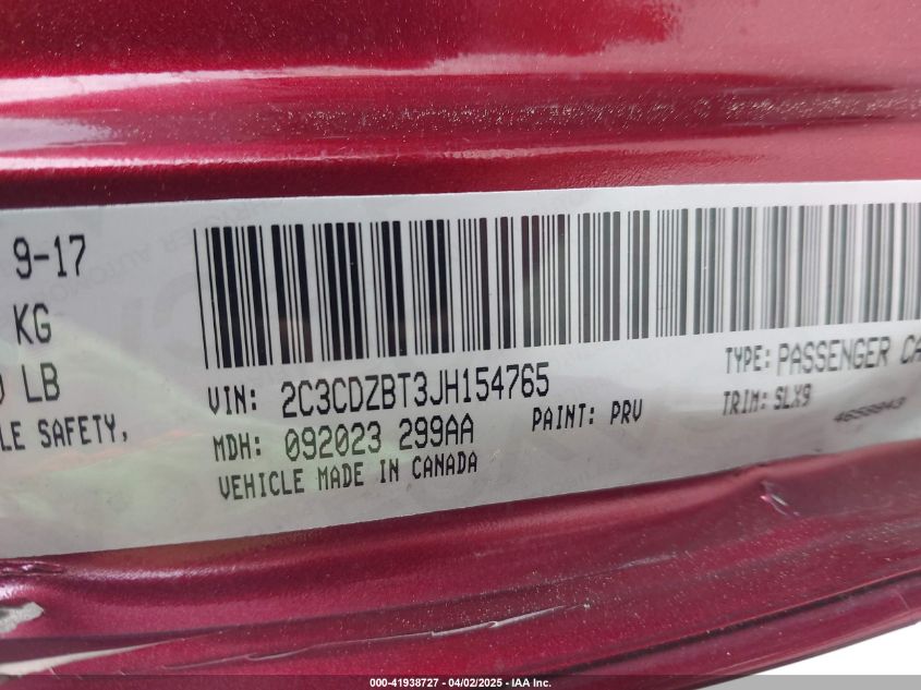 2018 DODGE CHALLENGER | 2C3CDZBT3JH154765