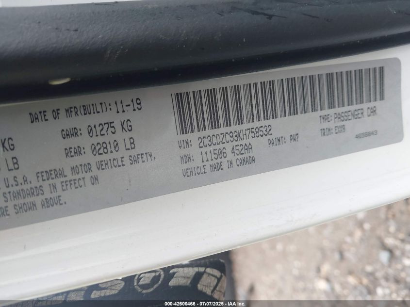 2019 DODGE CHALLENGER | 2C3CDZC93KH758532