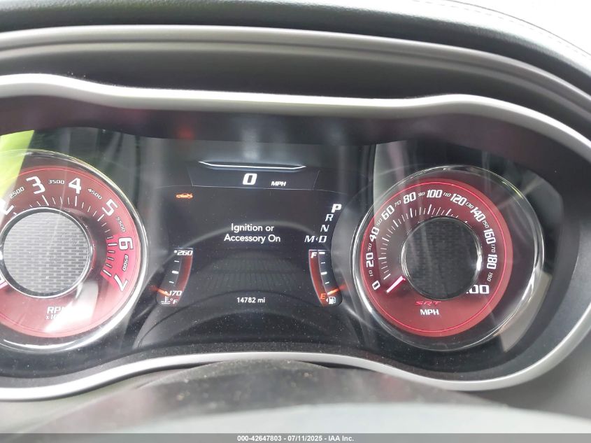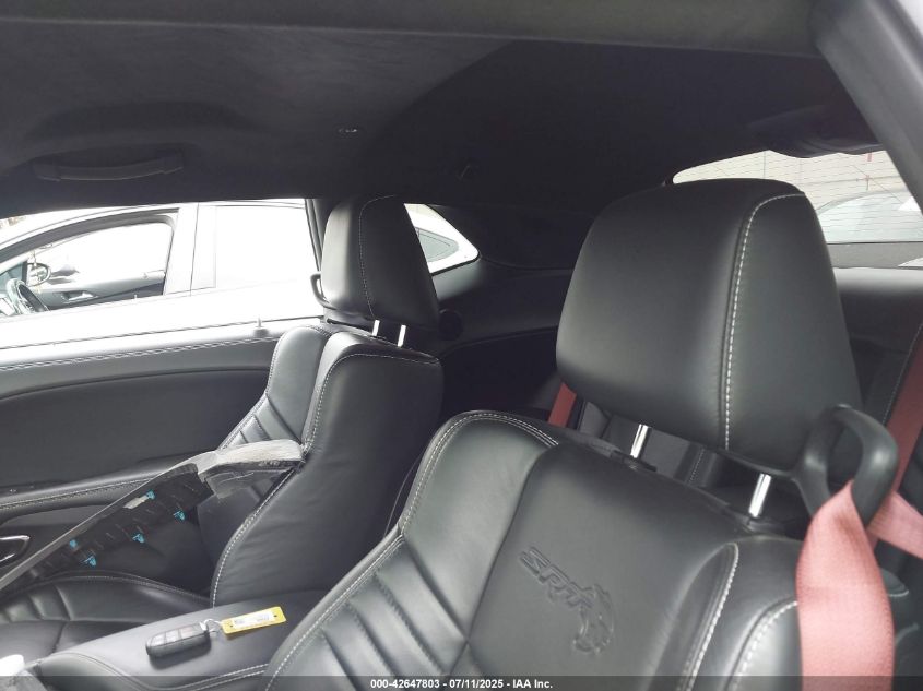 Inside, the Challenger continued its retro-modern blend, offering layouts that combined muscle car simplicity with modern comfort and technology. Standard models featured durable cloth seats in Black or Dark Slate Grey, while higher trims like the Scat Pack, SRT, and Redeye introduced premium Nappa leather, Alcantara suede inserts, SRT-embroidered headrests, and carbon fiber interior trim options. The dashboard design remained faithful to classic Challenger models, highlighted by a race-inspired instrument cluster, deep-set gauges, and a center stack tilted slightly toward the driver. Available equipment included heated and ventilated front seats, a heated steering wheel, and the Uconnect infotainment system with touchscreen sizes ranging from 7 to 8.4 inches, culminating in Track Pack performance pages for real-time telemetry.