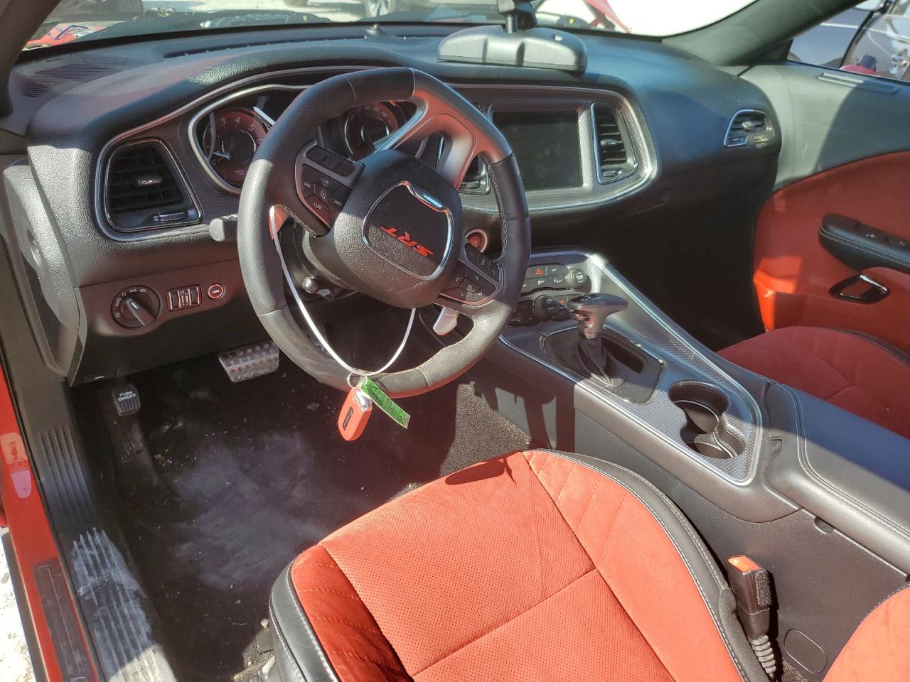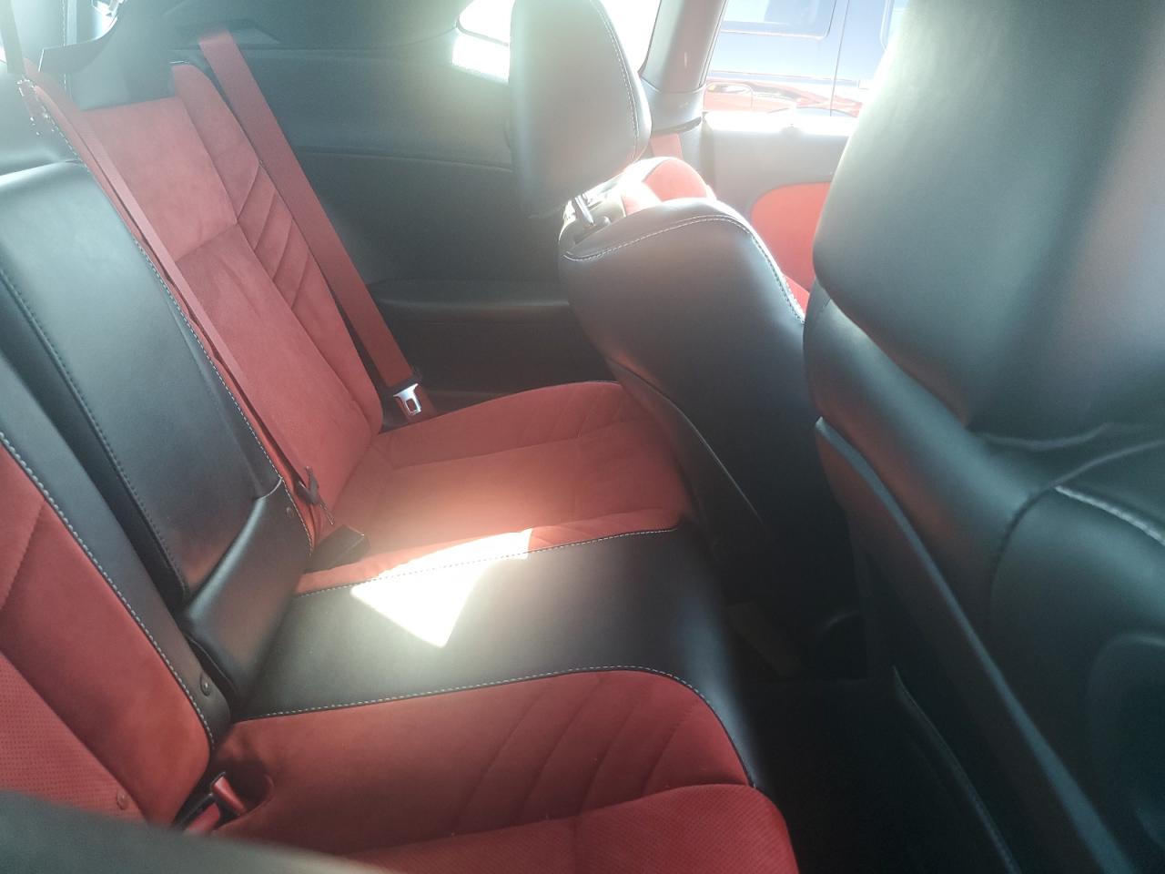 Inside, the Challenger continued its retro-modern blend, offering layouts that combined muscle car simplicity with modern comfort and technology. Standard models featured durable cloth seats in Black or Dark Slate Grey, while higher trims like the Scat Pack, SRT, and Redeye introduced premium Nappa leather, Alcantara suede inserts, SRT-embroidered headrests, and carbon fiber interior trim options. The dashboard design remained faithful to classic Challenger models, highlighted by a race-inspired instrument cluster, deep-set gauges, and a center stack tilted slightly toward the driver. Available equipment included heated and ventilated front seats, a heated steering wheel, and the Uconnect infotainment system with touchscreen sizes ranging from 7 to 8.4 inches, culminating in Track Pack performance pages for real-time telemetry.