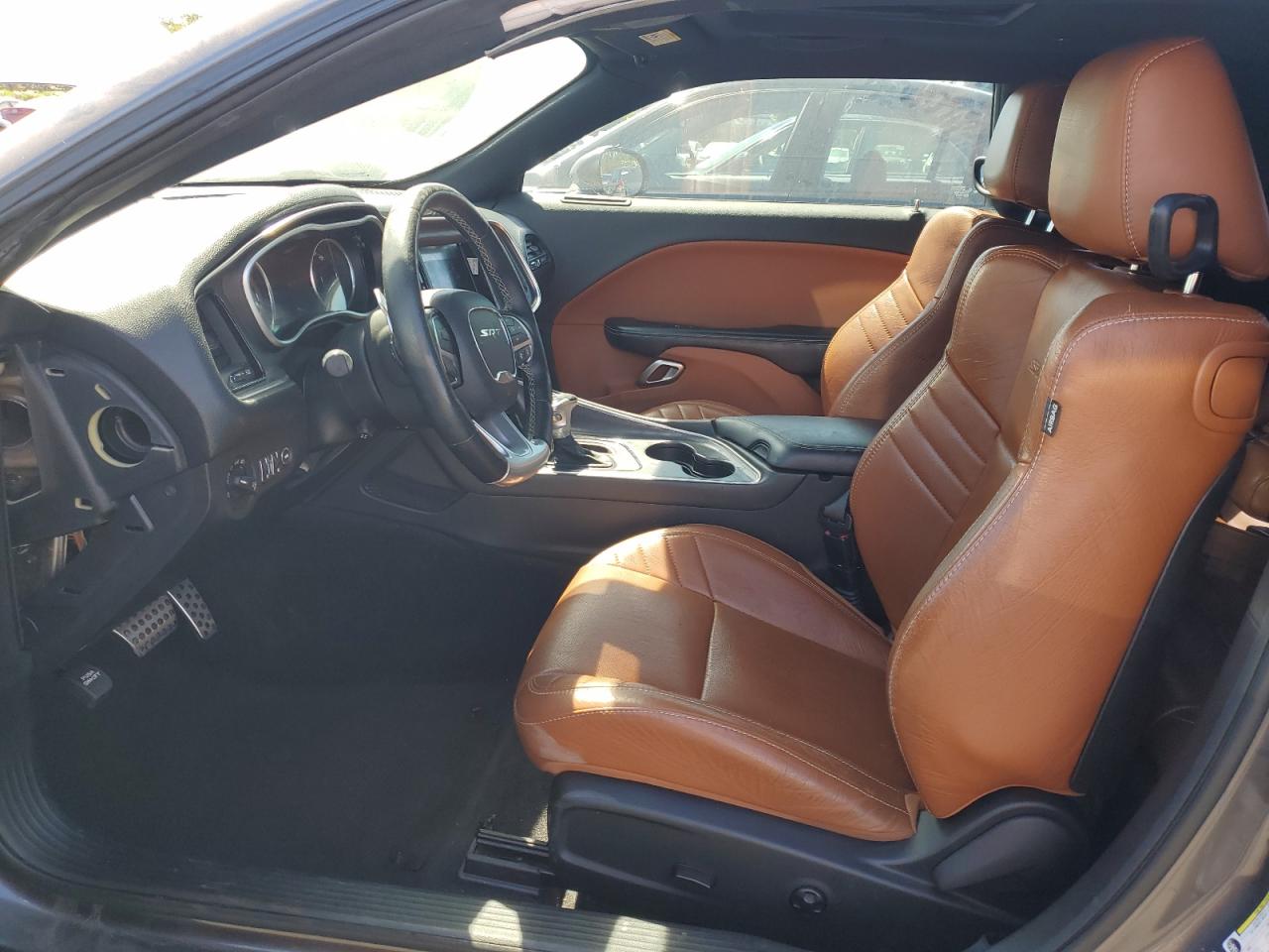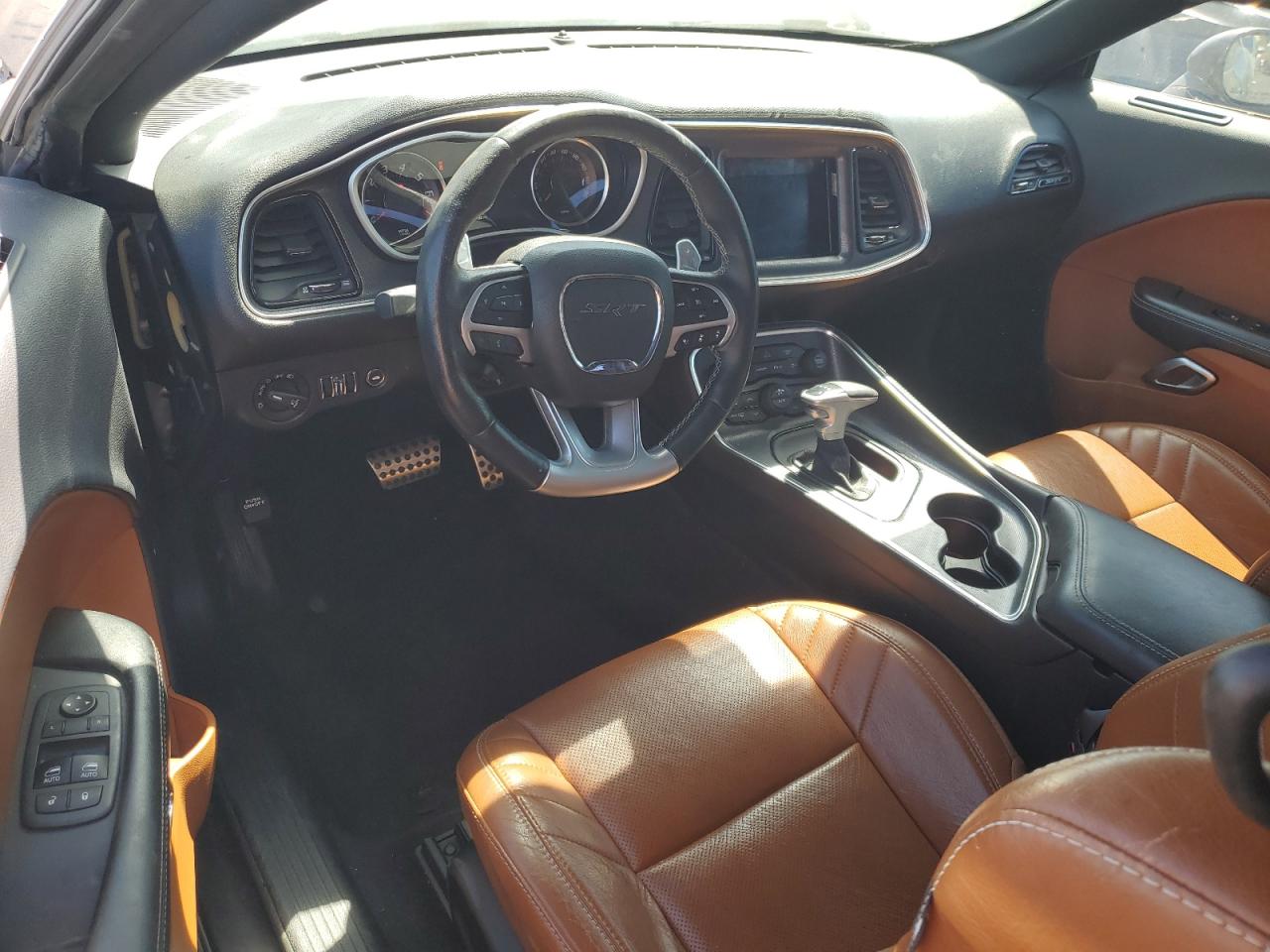 Inside, the Challenger continued its retro-modern blend, offering layouts that combined muscle car simplicity with modern comfort and technology. Standard models featured durable cloth seats in Black or Dark Slate Grey, while higher trims like the Scat Pack, SRT, and Redeye introduced premium Nappa leather, Alcantara suede inserts, SRT-embroidered headrests, and carbon fiber interior trim options. The dashboard design remained faithful to classic Challenger models, highlighted by a race-inspired instrument cluster, deep-set gauges, and a center stack tilted slightly toward the driver. Available equipment included heated and ventilated front seats, a heated steering wheel, and the Uconnect infotainment system with touchscreen sizes ranging from 7 to 8.4 inches, culminating in Track Pack performance pages for real-time telemetry.