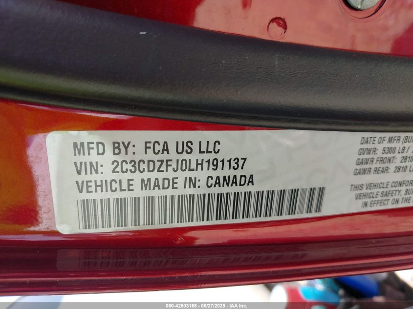 2020 DODGE CHALLENGER | 2C3CDZFJ0LH191137