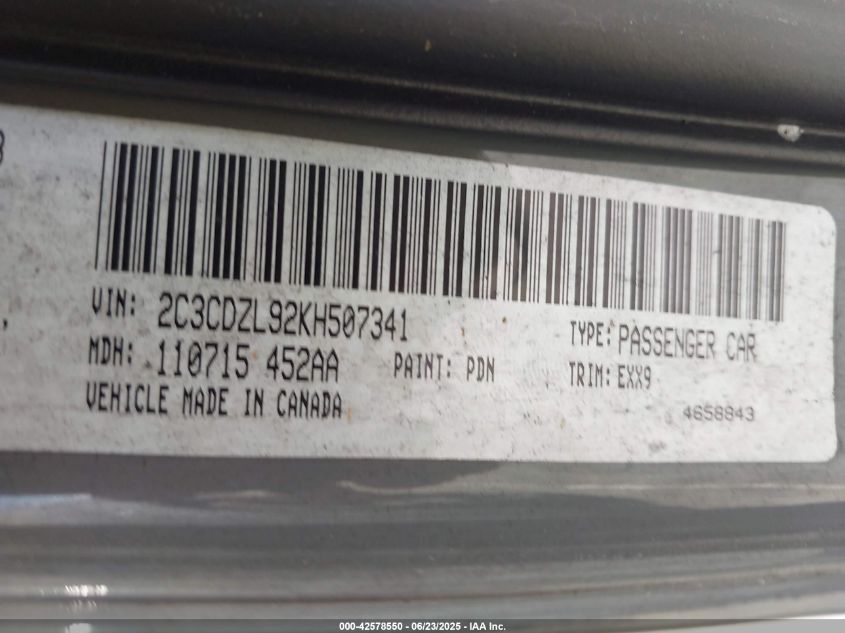 2019 DODGE CHALLENGER | 2C3CDZL92KH507341