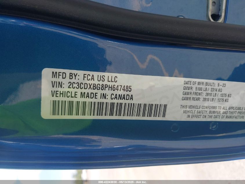 2023 DODGE CHARGER | 2C3CDXBG8PH647485