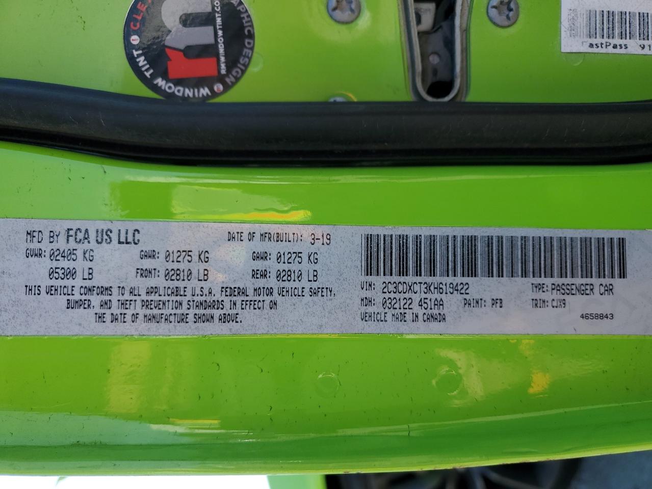 2019 DODGE CHARGER | 2C3CDXCT3KH619422