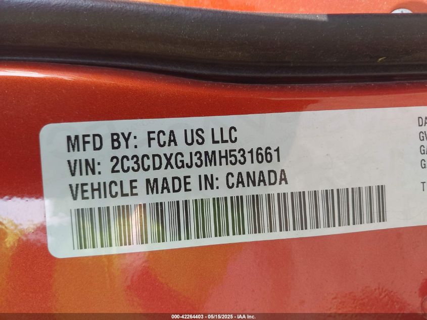 2021 DODGE CHARGER | 2C3CDXGJ3MH531661