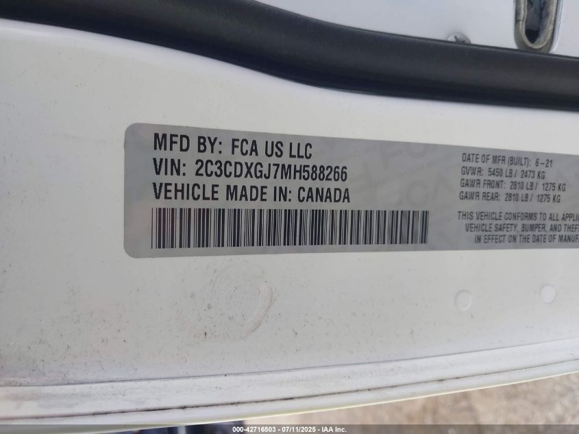 2021 DODGE CHARGER | 2C3CDXGJ7MH588266