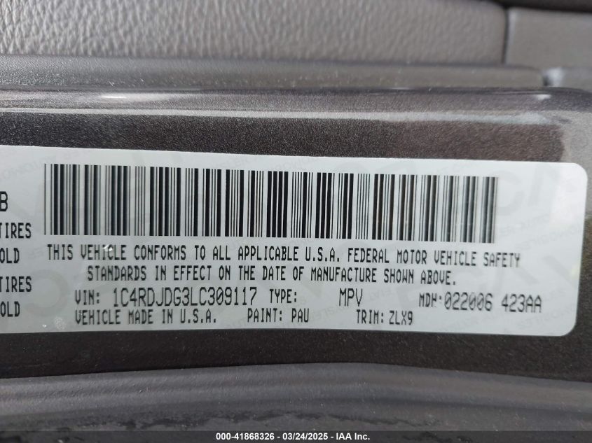 2020 DODGE DURANGO | 1C4RDJDG3LC309117