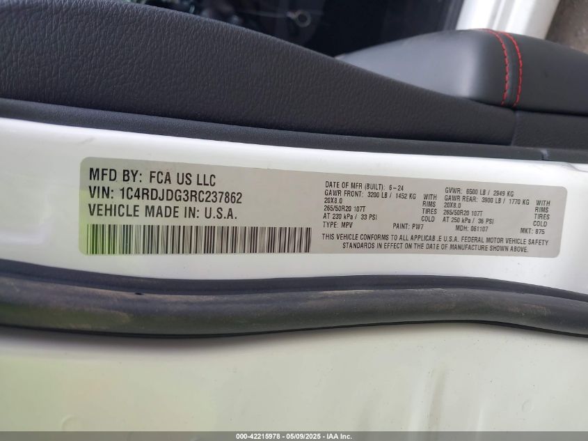 2024 DODGE DURANGO | 1C4RDJDG3RC237862