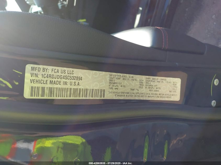 2025 DODGE DURANGO | 1C4RDJDG4SC532894