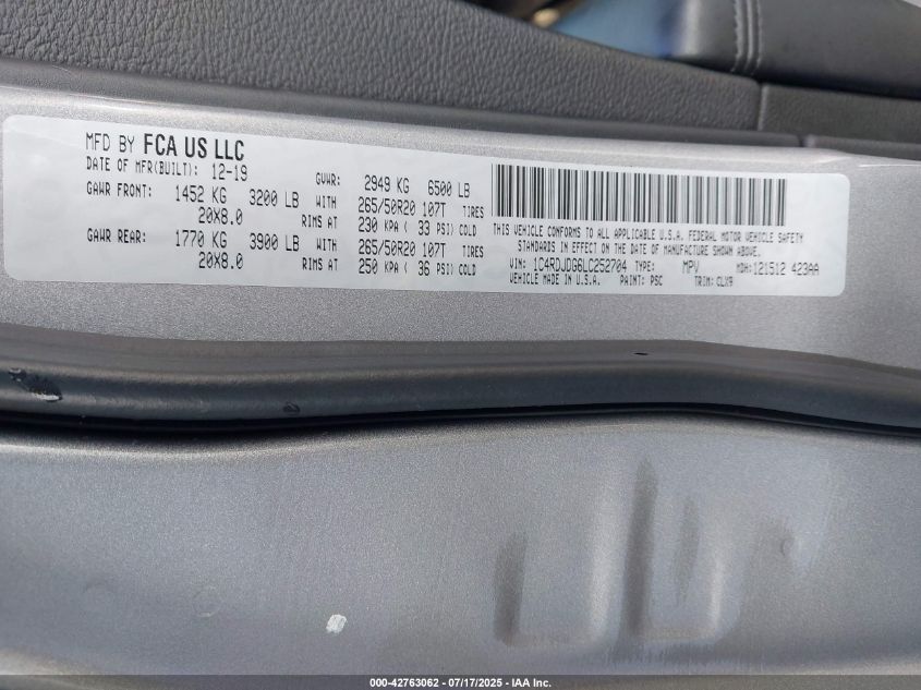 2020 DODGE DURANGO | 1C4RDJDG6LC252704