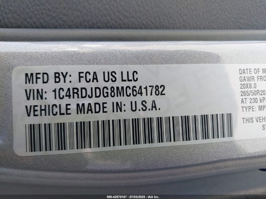 2021 DODGE DURANGO | 1C4RDJDG8MC641782
