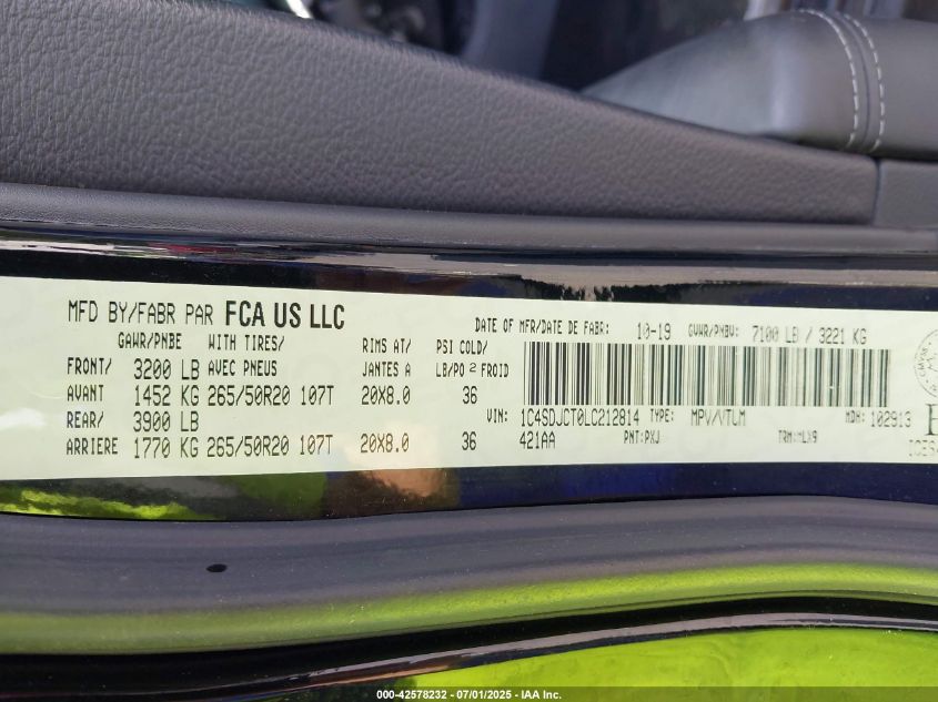 2020 DODGE DURANGO | 1C4SDJCT0LC212814
