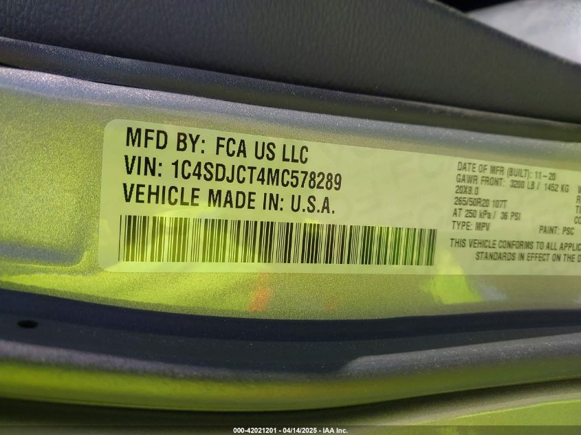 2021 DODGE DURANGO | 1C4SDJCT4MC578289