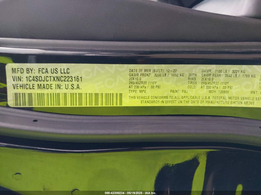 2022 DODGE DURANGO | 1C4SDJCTXNC223161