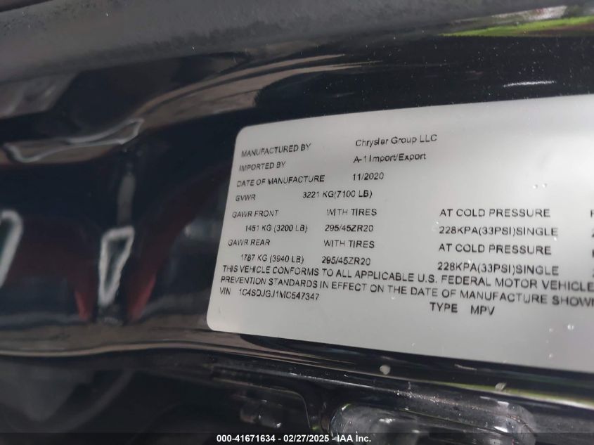 2021 DODGE DURANGO | 1C4SDJGJ1MC547347