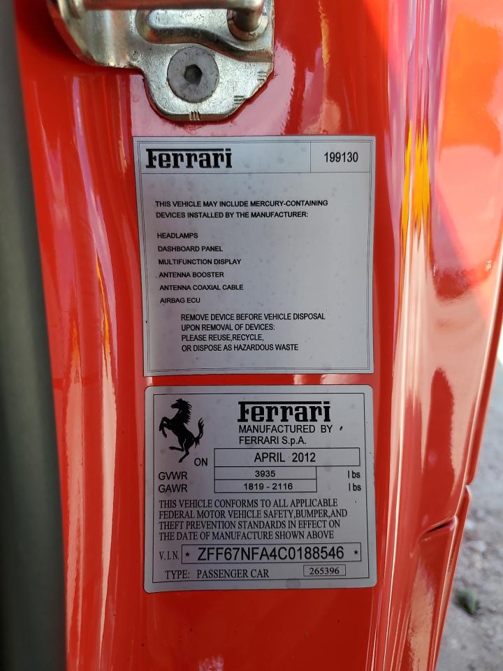 2012 FERRARI 458 ITALIA | ZFF67NFA4C0188546