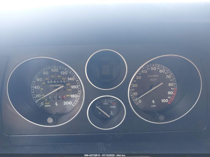 The interior was minimalist but luxurious, with supple leather across the dash, seats, and door cards, typically in Tan (Cuoio), Nero, or Sabbia. Manual models featured Ferrari’s legendary open-gated aluminum shifter, while F1 variants introduced early paddle controls mounted behind a small-diameter leather-wrapped steering wheel. Instrumentation remained analog and classically laid out, with white-on-black gauges and yellow central tachometer.