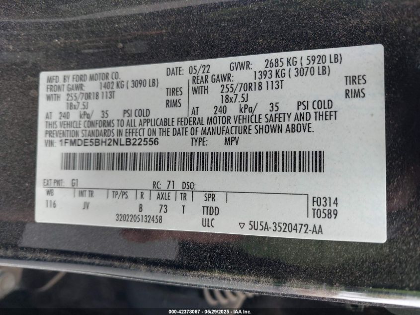 2022 FORD BRONCO | 1FMDE5BH2NLB22556