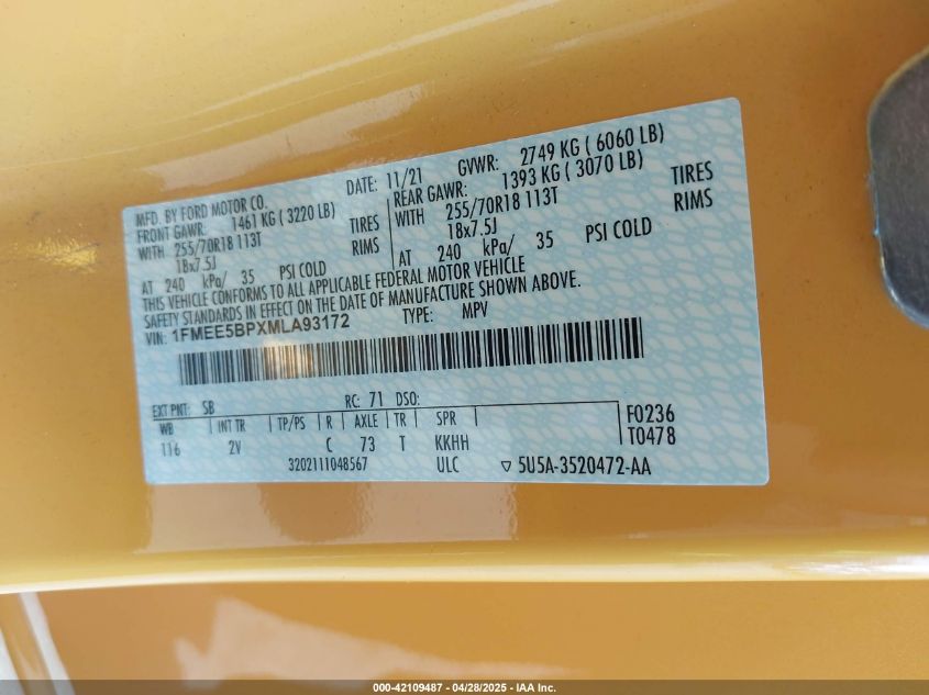 2021 FORD BRONCO | 1FMEE5BPXMLA93172