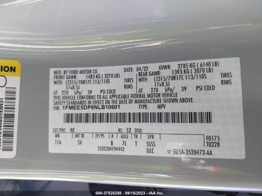 2022 FORD BRONCO | 1FMEE5DP8NLB10601
