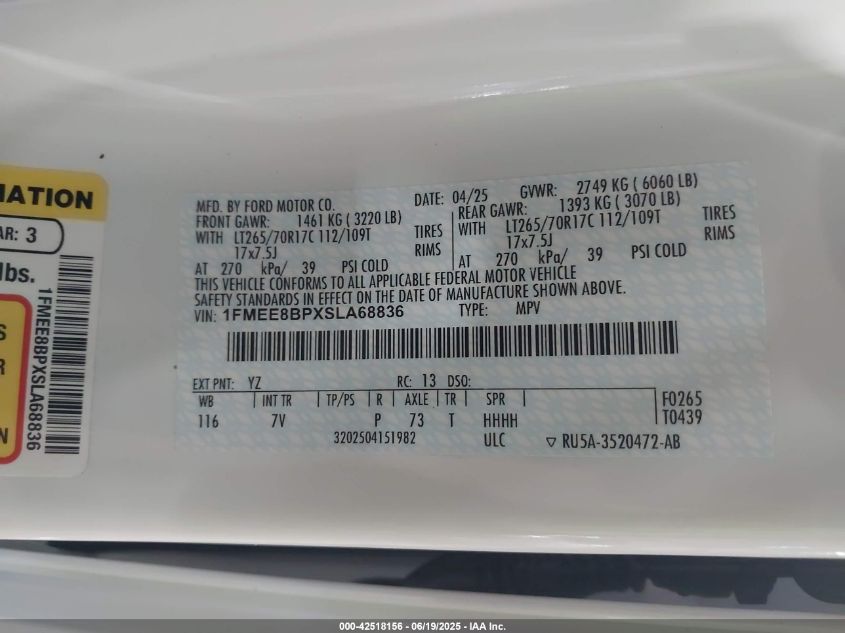 2025 FORD BRONCO | 1FMEE8BPXSLA68836
