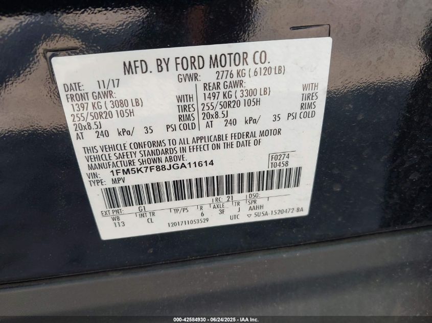 2018 FORD EXPLORER | 1FM5K7F88JGA11614