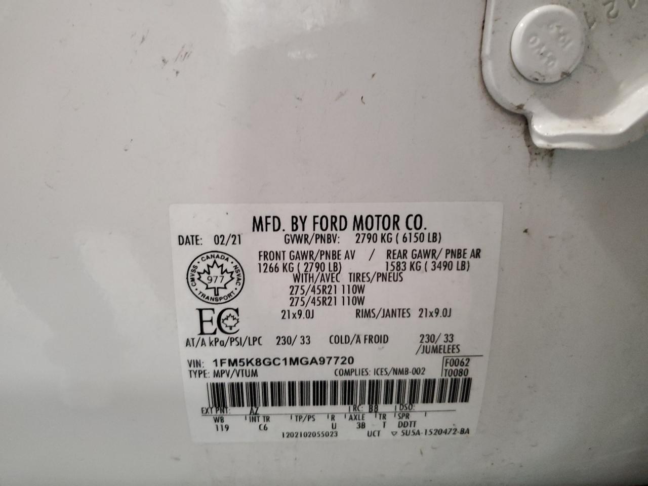 2021 FORD EXPLORER | 1FM5K8GC1MGA97720