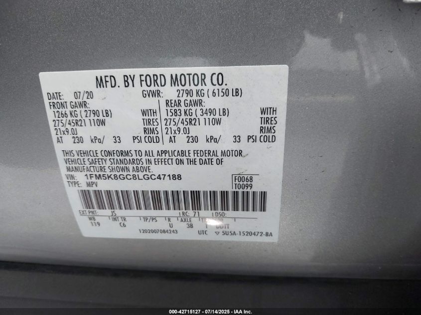 2020 FORD EXPLORER | 1FM5K8GC8LGC47188