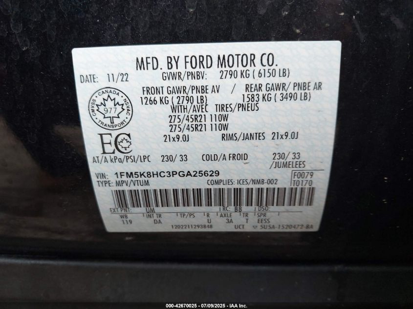 2023 FORD EXPLORER | 1FM5K8HC3PGA25629