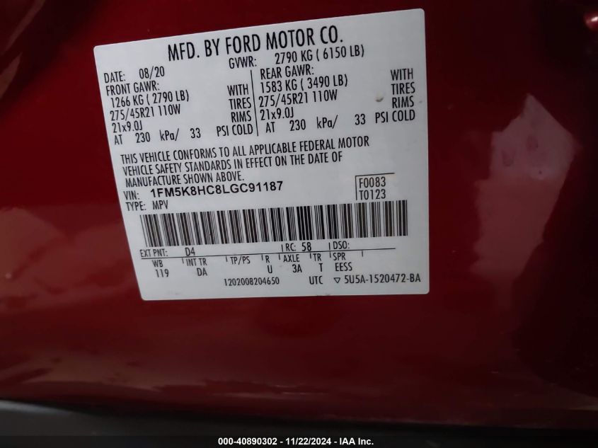 2020 FORD EXPLORER | 1FM5K8HC8LGC91187