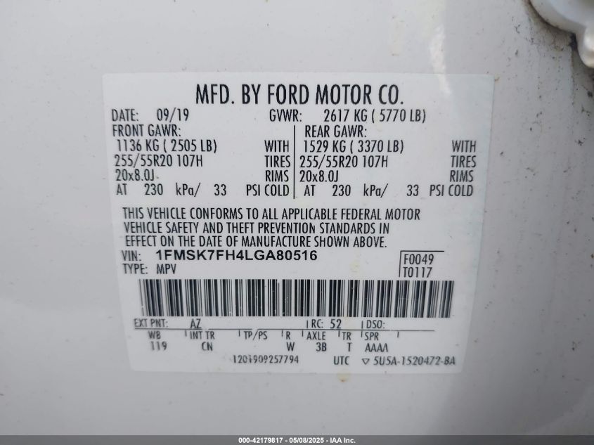 2020 FORD EXPLORER | 1FMSK7FH4LGA80516