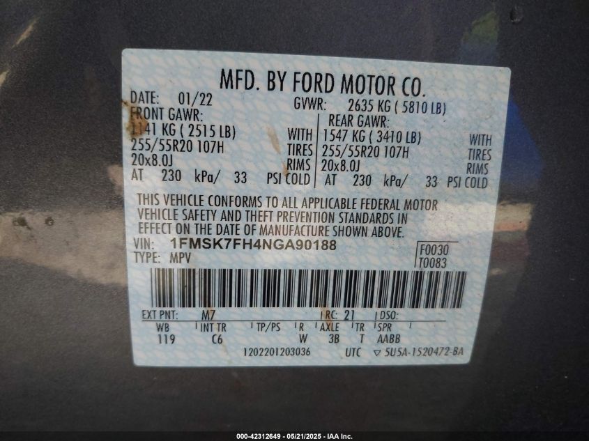 2022 FORD EXPLORER | 1FMSK7FH4NGA90188