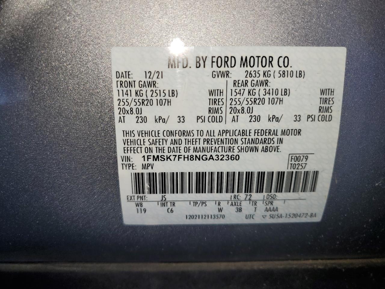 2022 FORD EXPLORER | 1FMSK7FH8NGA32360