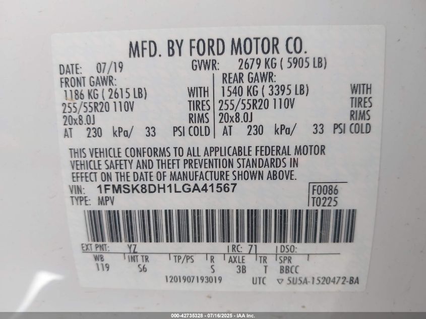 2020 FORD EXPLORER | 1FMSK8DH1LGA41567