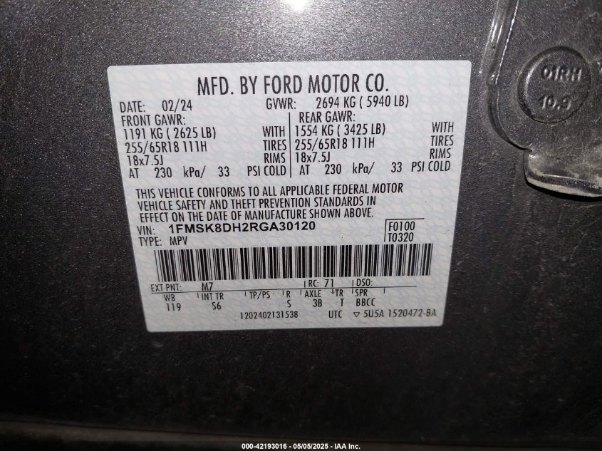 2024 FORD EXPLORER | 1FMSK8DH2RGA30120