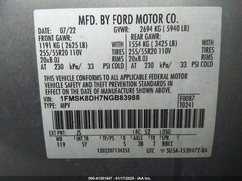 2022 FORD EXPLORER | 1FMSK8DH7NGB83988