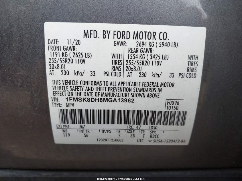 2021 FORD EXPLORER | 1FMSK8DH8MGA13962