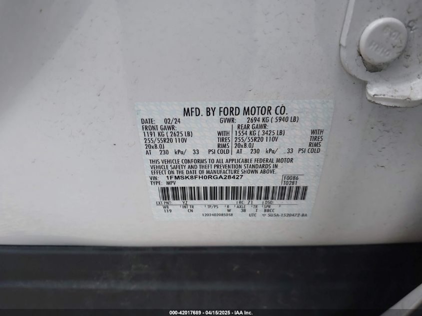 2024 FORD EXPLORER | 1FMSK8FH0RGA28427