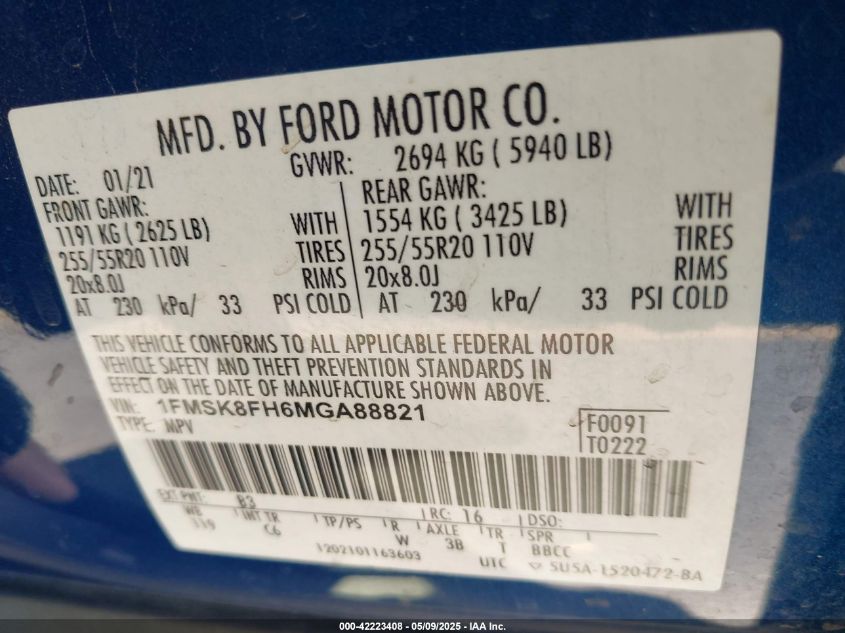 2021 FORD EXPLORER | 1FMSK8FH6MGA88821