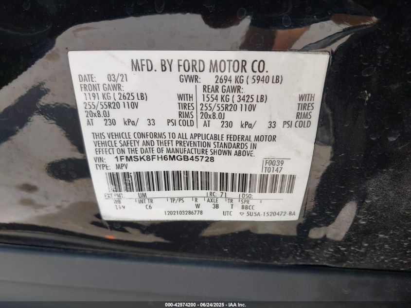 2021 FORD EXPLORER | 1FMSK8FH6MGB45728