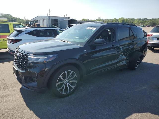 The Ford Explorer is a midsize three-row SUV with rear-wheel-drive architecture and bold, muscular proportions. The 2020 redesign shifted the platform to longitudinal engine mounting, improving handling and towing capability. The body features a long hood, sloping roofline, prominent shoulder lines, and a slightly tapered rear end for improved aerodynamics. With a 3025 mm wheelbase, it offers ample interior space and balanced proportions. The upright grille, C-shaped LED daytime running lights, and sculpted tailgate give it a tough yet refined aesthetic, with trim-specific details ranging from blacked-out accents on the ST to satin aluminum on Platinum models.