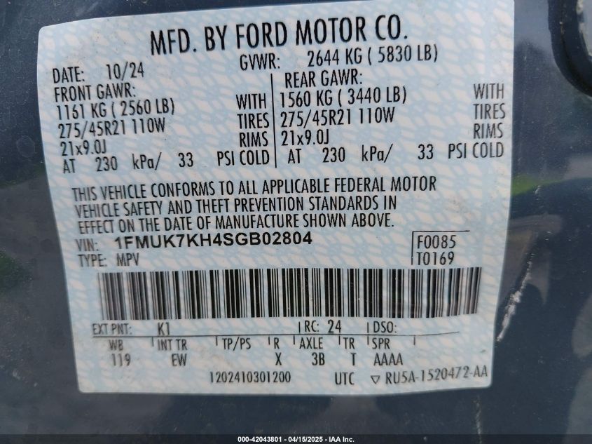 2025 FORD EXPLORER | 1FMUK7KH4SGB02804