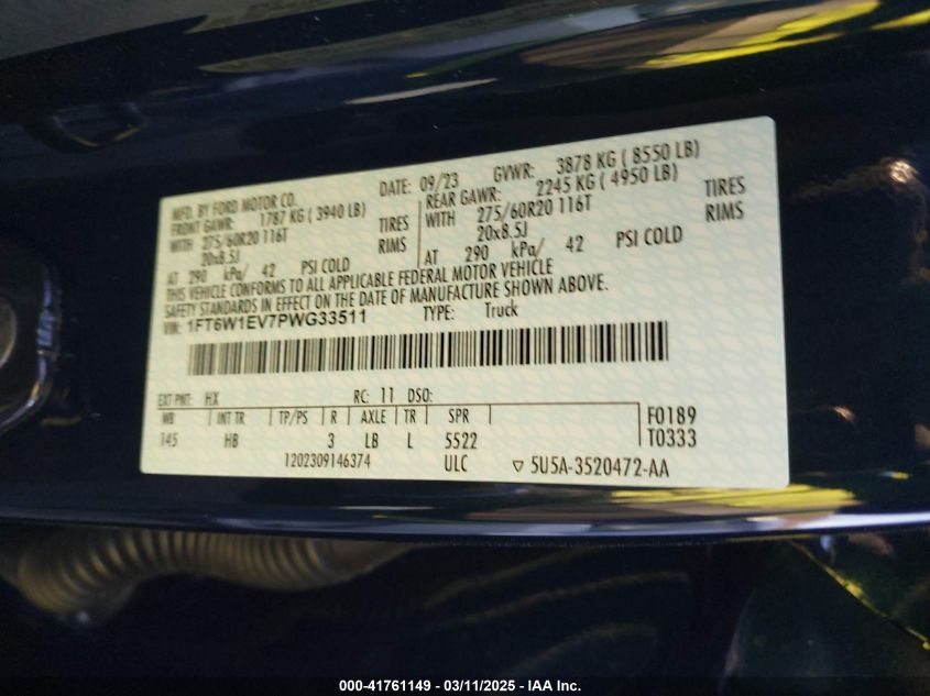2023 FORD F-150 | 1FT6W1EV7PWG33511