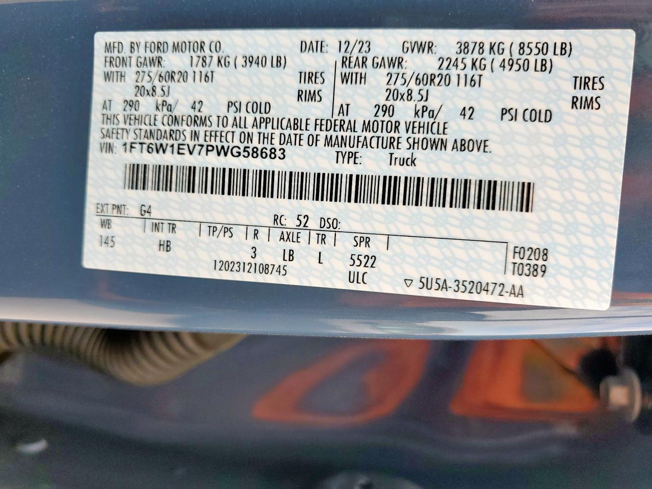 2023 FORD F-150 | 1FT6W1EV7PWG58683