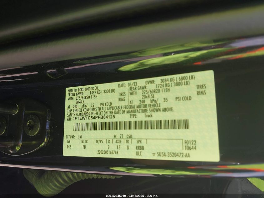2023 FORD F-150 | 1FTEW1C54PFB84125