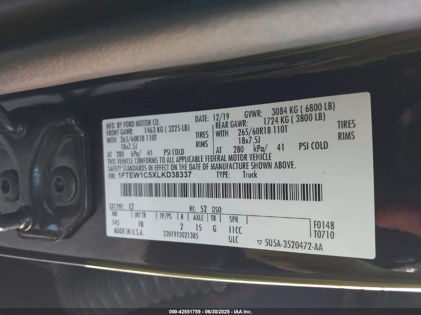2020 FORD F-150 | 1FTEW1C5XLKD38337