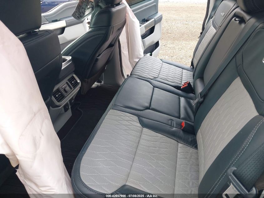 Inside, the F-150 ranges from durable work-grade materials in XL trims to near-luxury experiences in King Ranch, Platinum, Limited, and Lightning trims. Standard interiors feature tough cloth or vinyl upholstery, while higher trims introduce Kingsville leather, Admiral Blue two-tone finishes, and carbon fiber or brushed metal trim pieces. Available equipment includes heated and ventilated massaging seats, full digital gauge clusters, 12-inch SYNC 4 touchscreen systems, fold-flat work surfaces, and even fold-out sleeper front seats for overnight stays.