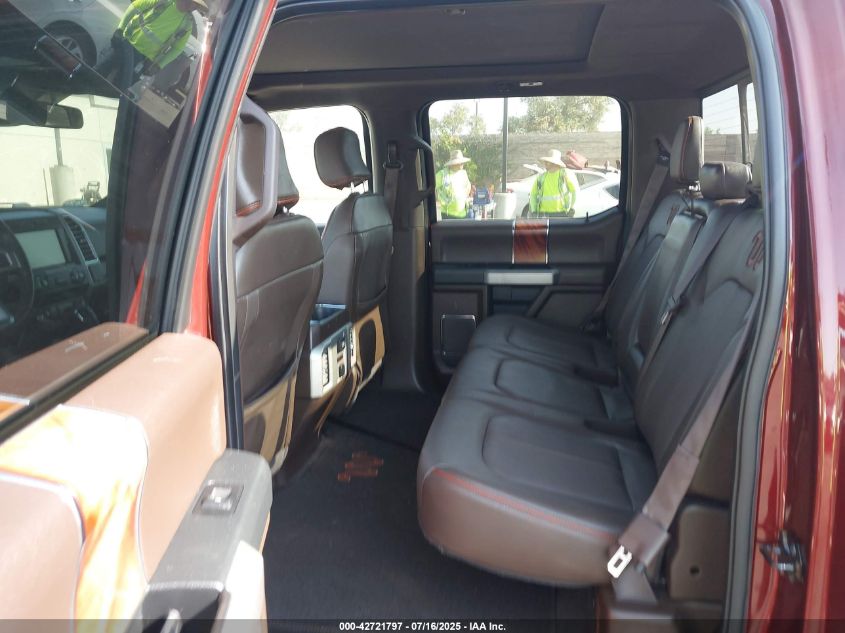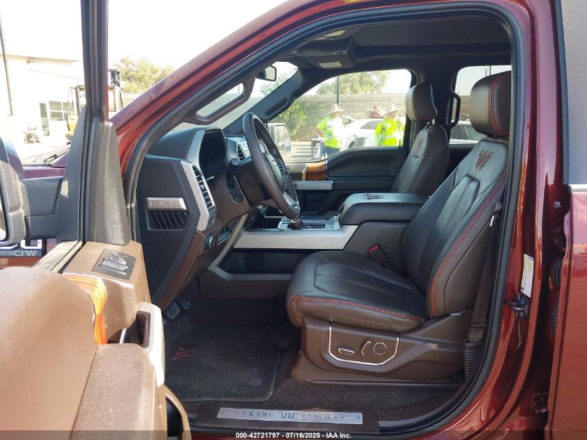 Interior trims varied widely across trims, from work-grade vinyl in XL to King Ranch and Platinum editions with two-tone premium leather, wood accents, ambient lighting, and advanced infotainment (SYNC 3 with 8” touchscreen). Later years included B&O audio, heated/cooled seats, rear sliding glass with defrost, and twin-panel moonroof.